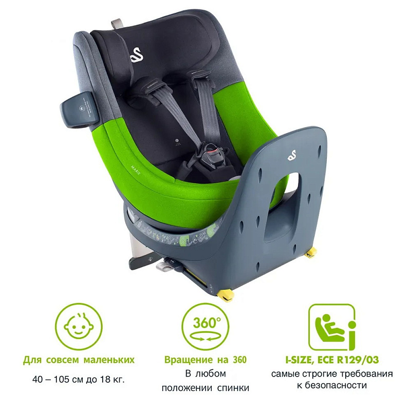 Swandoo Marie i-Size поворотное автокресло на 360 градусов. Соответствует новым стандартам безопасности I-SizeR129 I-size обеспечивающие максимальную безопасность и невероятный комфорт ребенку с рождения до 5 лет. Благодаря возможности вращения чаши на 360 градусов сиденье автокресла можно устанавливать как против, так и по направлению движения автомобиля.