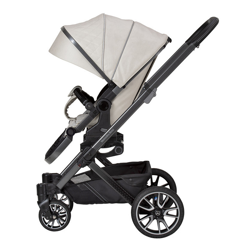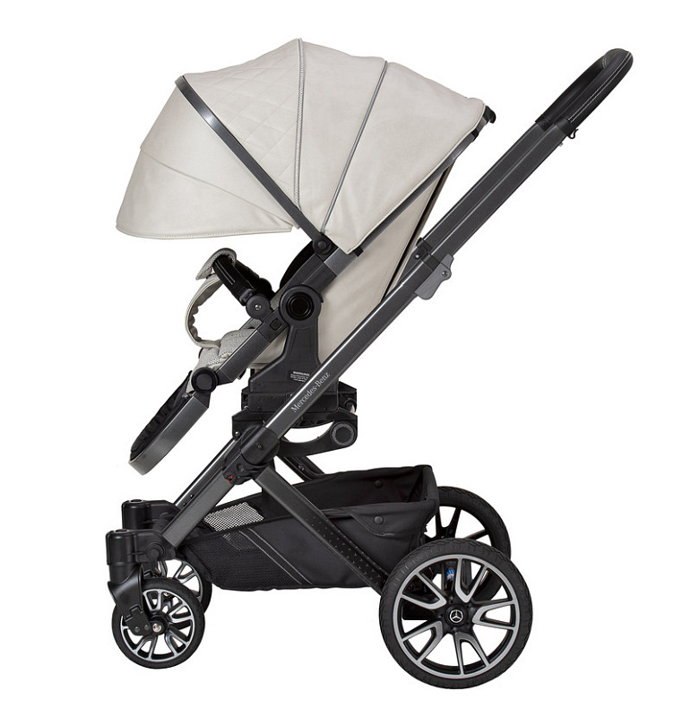 - 5-спицевые колеса коляски выполнены в дизайне AMG, как у настоящих спорткаров.