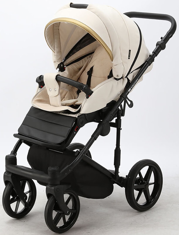 Коляска изготовлена из безопасных материалов, оборудована облегченными шасси из алюминиевого сплава и амортизацией на колесах. В сложенном виде не занимает много места. Внутренняя и внешняя обивка произведены из качественных материалов. Люлька просторная, имеет вентиляцию дна, регулируемый подголовник. Прогулочный блок оборудован спинкой с регулировкой по высоте, ремнями безопасности с мягкими накладками.