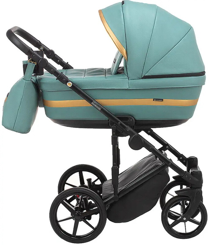 Детская коляска Adamex Rimini Deluxe 2 в 1 RI233 СЕРО-ЗЕЛ,КОЖА+ ЗОЛОТО.ОТДЕЛКА