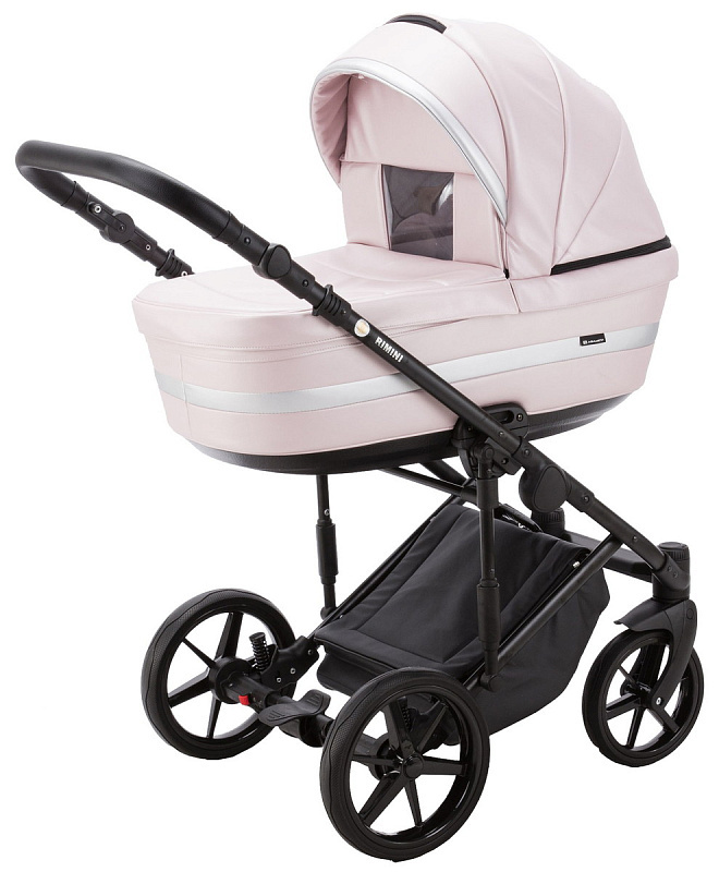 Детская коляска Adamex Rimini Deluxe 2 в 1 RI245 РОЗОВ.КОЖА+ СЕРЕБР.ОТДЕЛКА