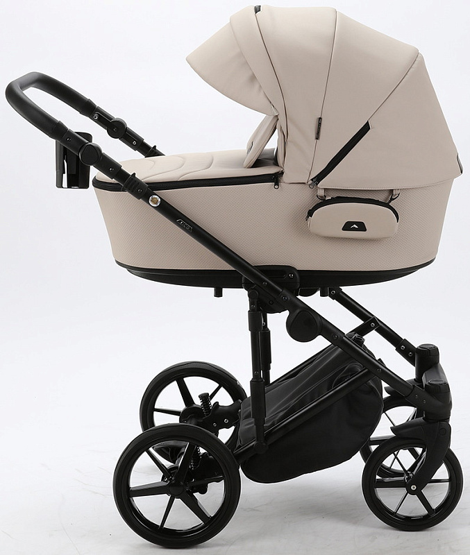 Коляска изготовлена из безопасных материалов, оборудована облегченными шасси из алюминиевого сплава и амортизацией на колесах. В сложенном виде не занимает много места. Внутренняя и внешняя обивка произведены из качественных материалов. Люлька просторная, имеет вентиляцию дна, регулируемый подголовник. Прогулочный блок оборудован спинкой с регулировкой по высоте, ремнями безопасности с мягкими накладками.