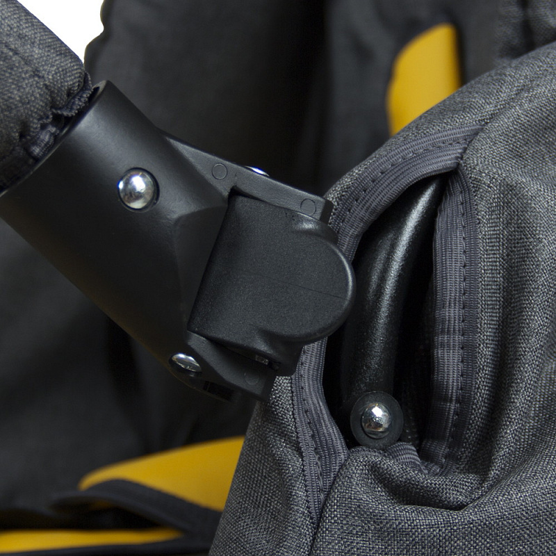Каркасная люлька - глубокая и просторная - снаружи обшита текстилем с водоотталкивающей пропиткой с яркими вставками из экокожи. Внутренний чехол из 100% хлопка снимается для стирки. Наполнитель матрасика - ППУ. При необходимости можно поднять подголовник, что становится актуальным, когда ребенок подрастает и начинает интересоваться окружающим миром, но для прогулочного блока еще рановато. Накидка на ножки надежно фиксируется кнопками, предусмотрен ветрозащитный отворот. От солнца защитит козырек, кроме того, в жаркую погоду пригодится вставка из москитной сетки для вентиляции, которая закрывается текстильным клапаном на молнии. Снятая люлька мягко и безопасно укачивает малыша.