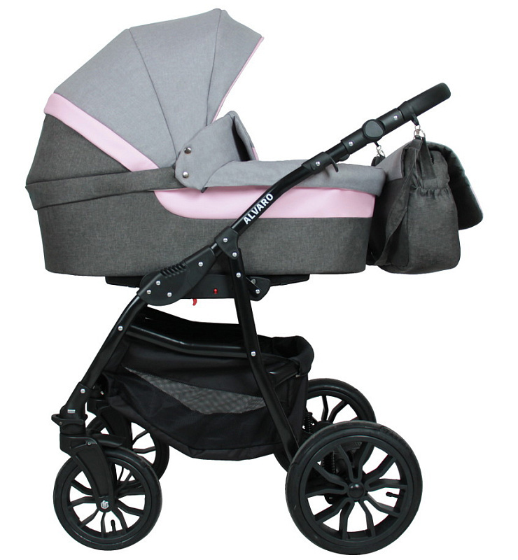 Детская коляска Alis Alvaro 2 в 1 Al 03 т.серый+св.серый+розовая кожа