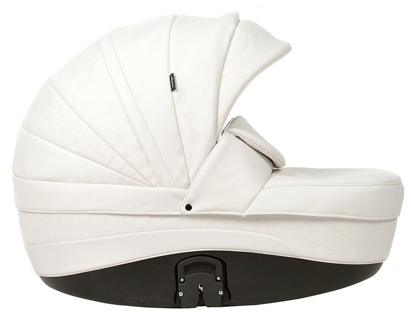 Благодаря технологии бесшовного литья пластиковая люлька имеет прочную цельную конструкцию; С регулируемым подголовником для изменения положения крохи в разные периоды дня; Люлька выполняет функцию колыбели при ее установке отдельно от рамы на ровную поверхность; Обтянутая белой эко-кожей ручка-переноска модуля позволяет транспортировать блок вместе с малышом; Для обеспечения правильного микроклимата в холодное время года используется дополняющий объемный капор отворот-штормовик, в летнее – затянутые сеткой и закрывающиеся на молнию вентиляционные окна; Регулировка капюшона происходит абсолютно бесшумно; Рама со спальным модулем весит 16 кг.