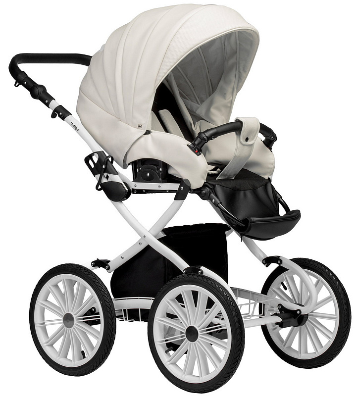 Детская коляска Indigo Special Plus 3 в 1 с автокреслом Avionaut Cosmo Is01 белая кожа