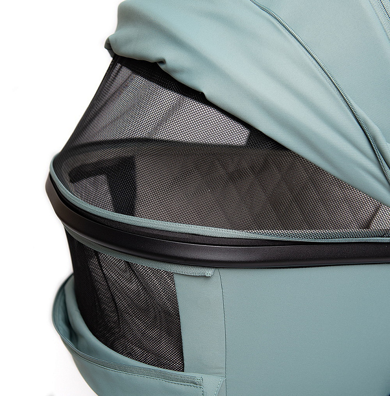 • Для лучшей циркуляции воздуха в жаркие летние дни в капоре люльки и у изголовья есть москитная сетка, спрятанная под молнией