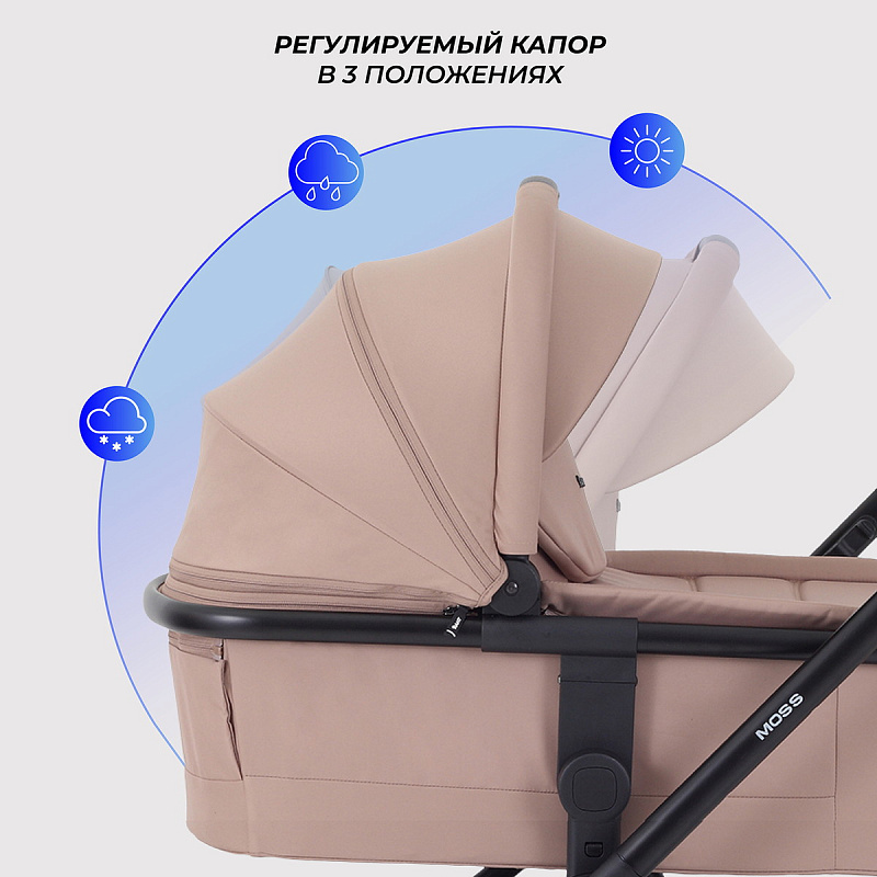 - капюшоны обоих блоков комплектованы внушительными козырьками от солнца и дождя, которые при необходимости можно отстегнуть