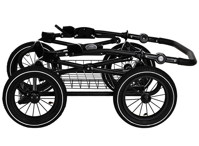 Главное достоинство такой рамы, что при движении по труднопроходимой местности колеса не вибрируют, коляска движется очень легко, а идеальная амортизация, основанная на кулисах, закрепленных в четырех точках, обеспечивает хороший сон для ребенка.
