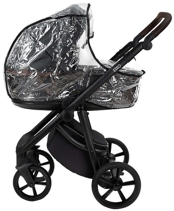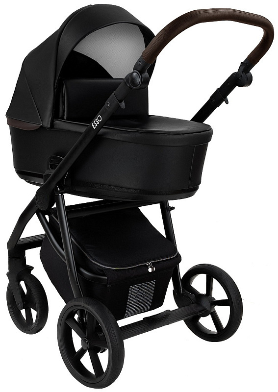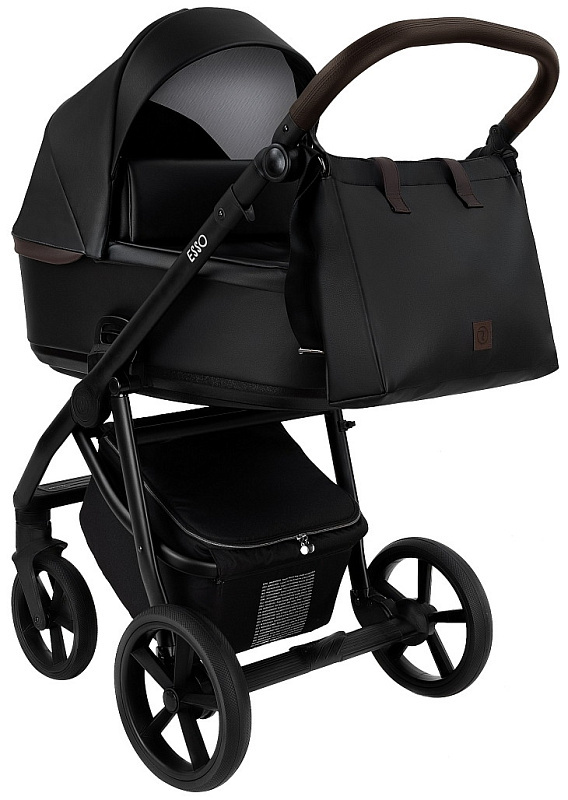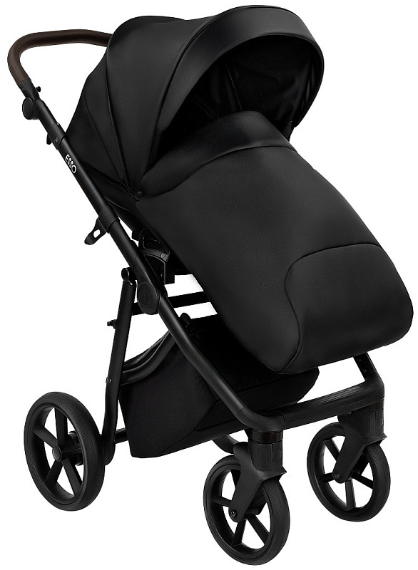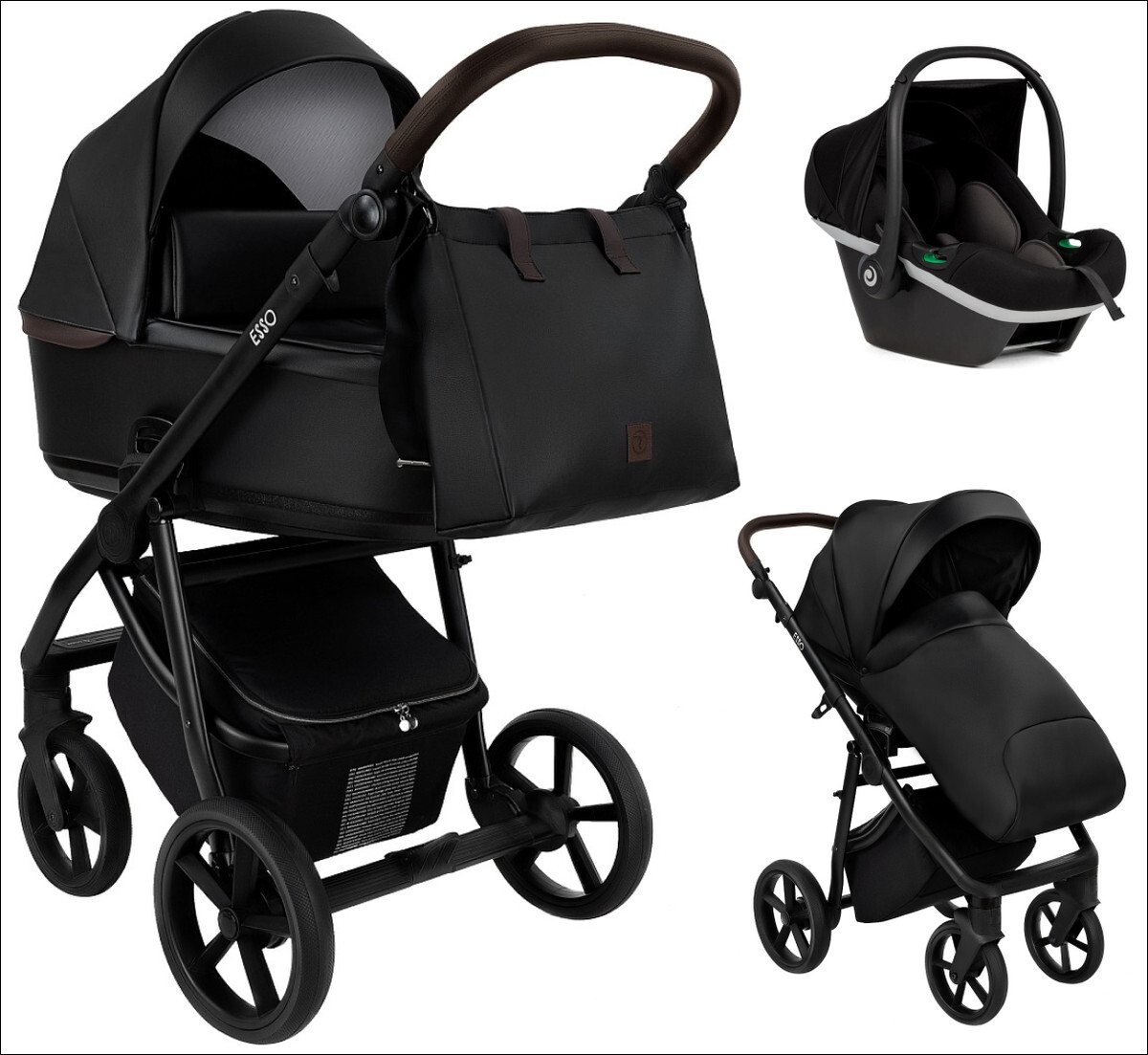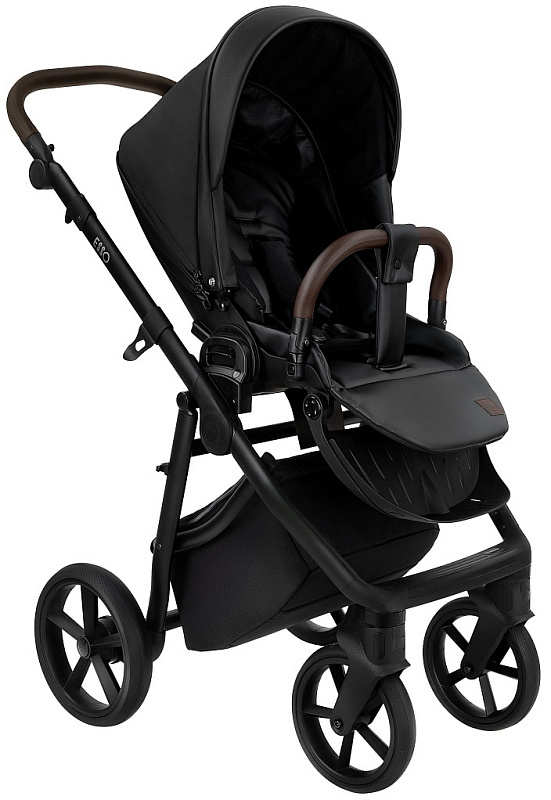 Детская коляска Roan Esso 2025 Кожа 3 в 1 с автокреслом Tutis Elo Black ESSK/210/1 Black /Black/руч.Тем.коричневый