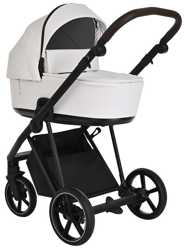 Детская коляска Roan Sol Кожа 3 в 1 с автокреслом Tutis Elo Black RSL/2024 White/Black/руч.Тем.коричневый