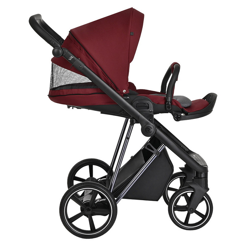 Большая полноразмерная, бескаркасная люлька, предусмотрена глубокая система вентиляции нового поколения «double Air». Отделка внутренней части люльки выполнена из хлопковой натуральной ткани, имеется дополнительный бортик для использования коляски в зимний период. Большой глубокий капор и регулировка капюшона.