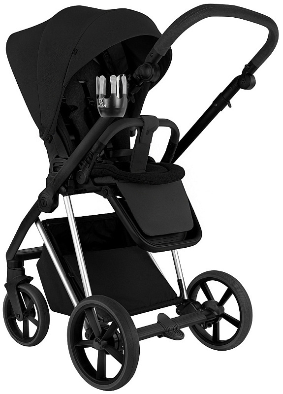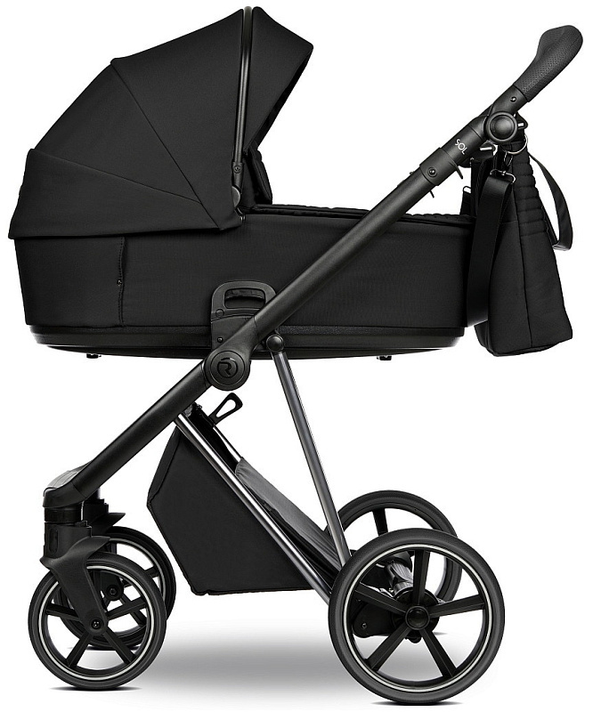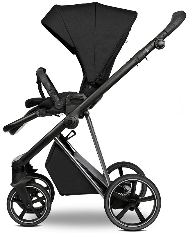 Детская коляска Roan Sol Vintage Luxury 2.0 3 в 1 с автокреслом Tutis Elo Lux EduSky Grey VIN 05/CB Caviar Black/Nickel/руч.Black