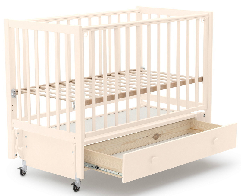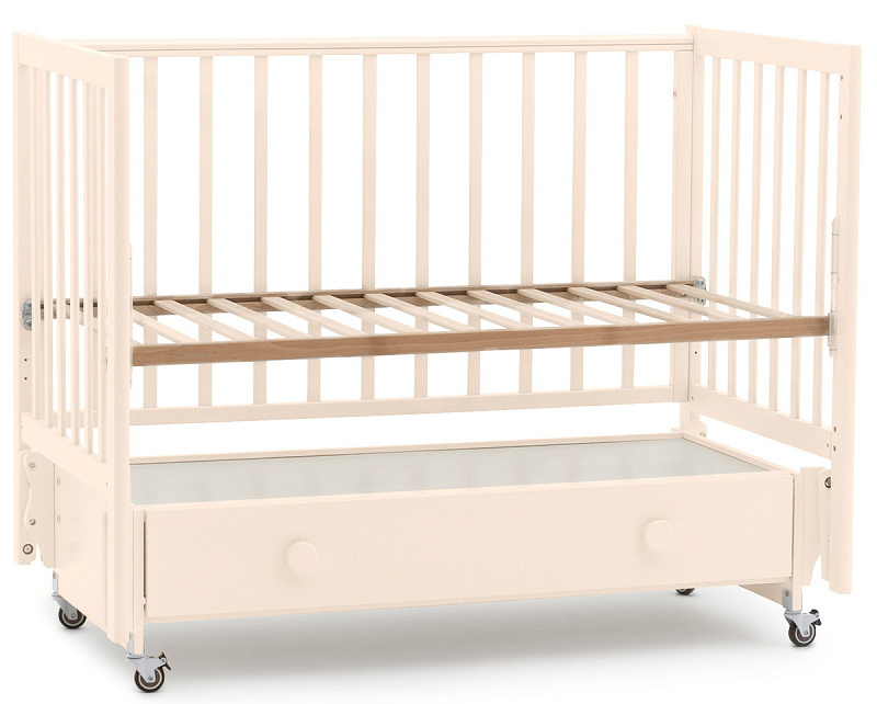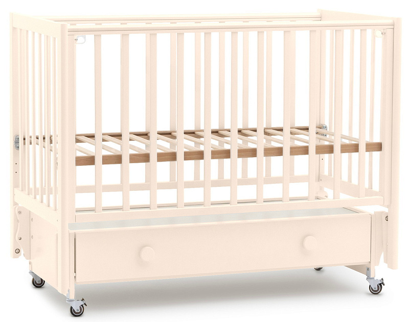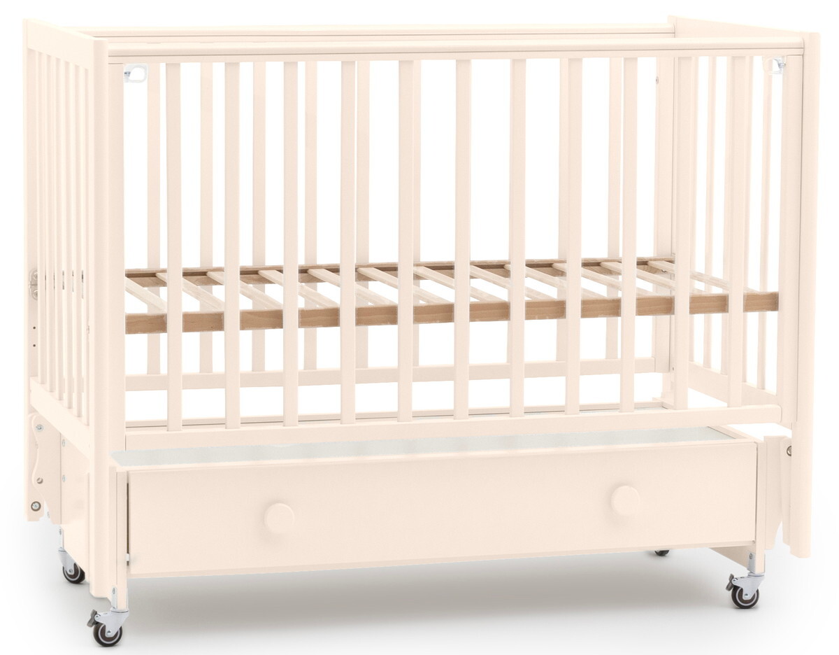 • Под кроваткой вместительный ящик на плавных направляющих полного выдвижения.