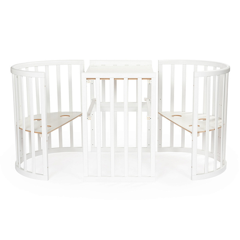 Благодаря отсутствию углов кроватка в любой из возможных трансформаций остается безопасной для ребёнка, к тому же округлые линии придают ее дизайну легкость и изысканность. А расширенная цветовая палитра из популярных оттенков позволяет подобрать расцветку на любой вкус в зависимости от эстетических представлений родителей и особенностей интерьера.