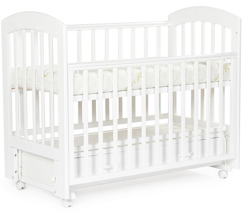 Детская кроватка Bebizaro Regency маятник универсальный с ящиком. Это функциональная кроватка, продуманная до мелочей, это максимальный комфорт и безопасность для вашего малыша. Каркас кроватки выполнен из массива берёзы. Для удобства родителям, боковая стенка кроватки регулируется по высоте. Модель оборудована вместительным и практичным ящиком для хранения, а также колёсами для её перемещения по комнате.