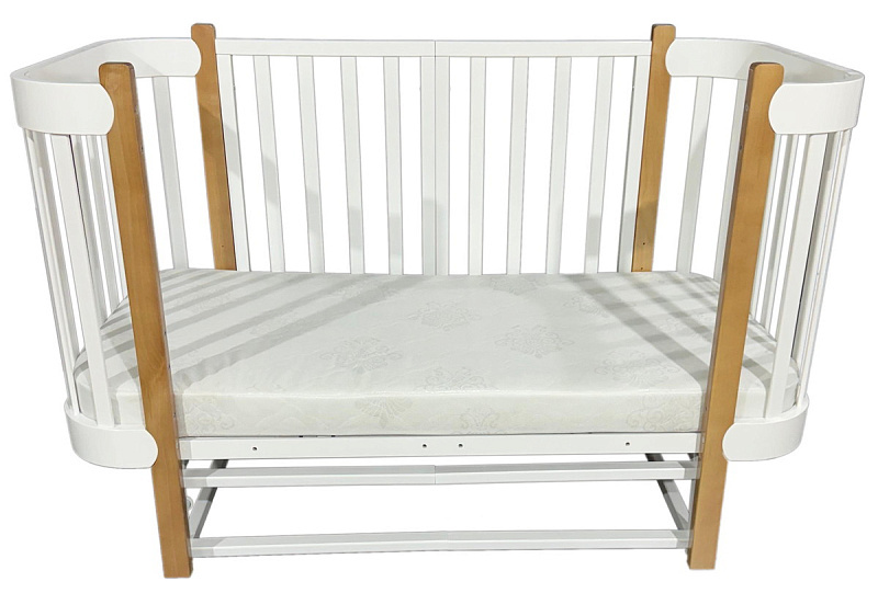 Новая кроватка Carly 3 в 1 с комплектом для трансформации из кровати с размером спального места 910х700 мм до спального места размером 1400х700 мм. Впоследствии переднее ограждение можно убрать и использовать защитный бортик, который также идет в комплекте. Модель укомплектована продольным маятником, благодаря чему можно укачивать малыша. Также в комплекте есть колеса со стопорами для удобного перемещения кровати по комнате. Колеса и маятник можно использовать только раздельно друг от друга! Кровать выполнена из натуральных материалов и покрыта гипоалергенной краской, что абсолютно безопасно для Вашего малыша.