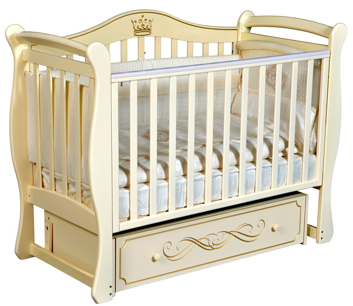 Кроватка с маятниковым механизмом поперечного или продольного качания. Родители по достоинству оценят качество и комфорт системы, ее удобство и практичность. Кроватка производится в соответствии с европейскими стандартами качества из экологичных и безопасных для ребенка материалов: массива березы. Кроватка отлично впишется даже в самую компактную детскую комнату. Древесина покрыта нетоксичными, безвредными для детей краской и лаком. Реечное ортопедическое дно регулируемое - 2 положения по высоте. Силиконовые накладки-грызунки. В основании есть вместительный бельевой ящик закрытого типа.