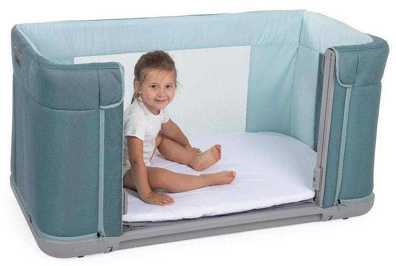 Модель с тремя функциональными возможностями. Можно использовать в качестве приставной кроватки для совместного сна вплоть до 4 лет, традиционной отдельно стоящей кроватки, а также в виде напольной кровати для подросших малышей.