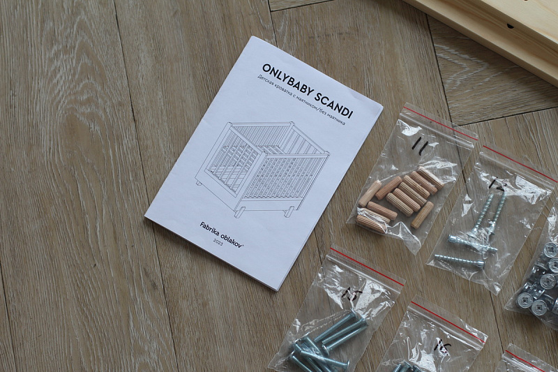 У детской кровати Onlybaby Scandi нет острых углов: закругленные края не только повышают безопасность, но и делают строгую геометрию более мягкой. Боковые стенки имеют увеличенное расстояние между рейками - 7,8 см. Ложе имеет три положения, верхнее для новорожденных, среднее положение для деток от 6 месяцев и нижнее положение для детей от 1 года до 5 лет, оно также позволяет использовать кроватку в качестве манежа. Передняя решётка легко убирается, чтобы было удобно придвинуть кровать поближе к родительской и обеспечить контакт с мамой.