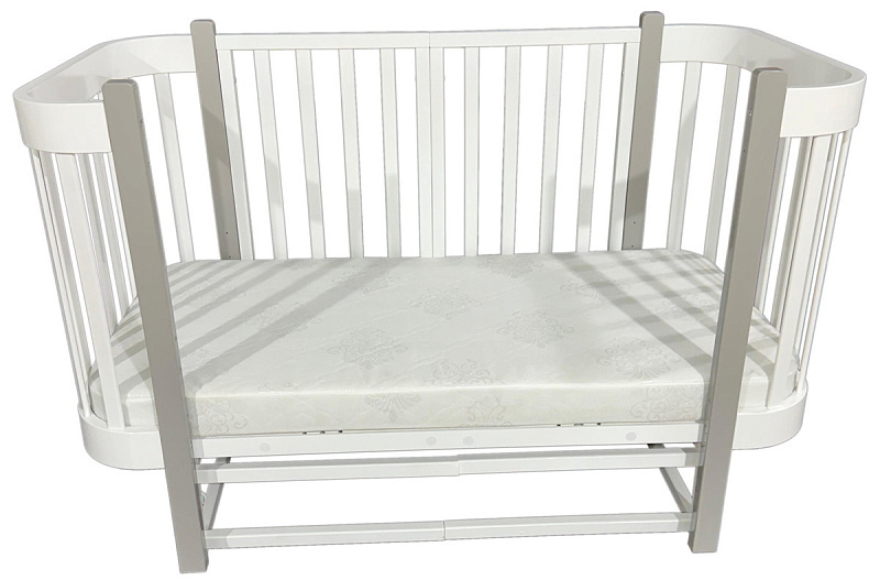 Новая кроватка FLORENCIA 3 в 1 с комплектом для трансформации из кровати с размером спального места 910х700 мм до спального места размером 1400х700 мм. Впоследствии переднее ограждение можно убрать и использовать защитный бортик, который также идет в комплекте. Модель укомплектована продольным маятником, благодаря чему можно укачивать малыша. Также в комплекте есть колеса со стопорами для удобного перемещения кровати по комнате. Колеса и маятник можно использовать только раздельно друг от друга! Кровать выполнена из натуральных материалов и покрыта гипоалергенной краской, что абсолютно безопасно для Вашего малыша.