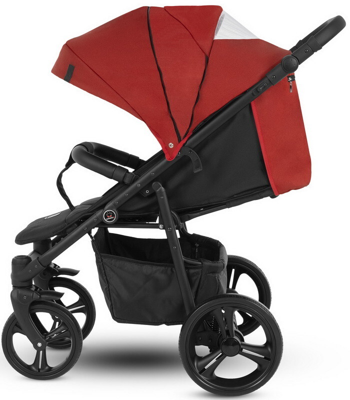 Детская коляска изготовлена из качественных и безопасных материалов. Шасси оснащены ножным тормозом, гелевыми колёсами, которые не требуют подкачки. Сидение прогулочного блока имеет регулируемые подножку, спинку и капюшон.