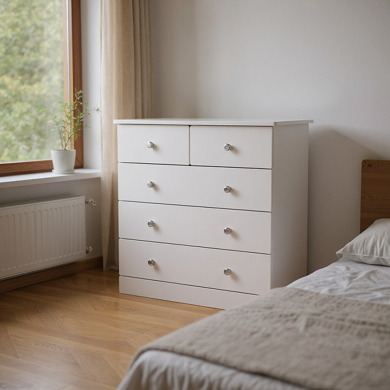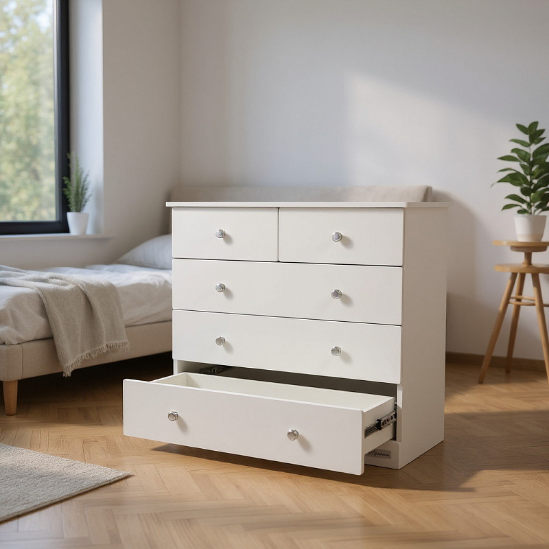 Практичность и удобство: просторные ящики для хранения детских вещей, а съемная пеленальная доска позволяет использовать комод долгие годы.