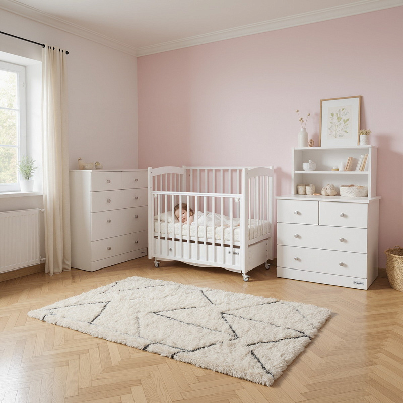 Этот практичный и элегантный комод станет верным помощником для родителей, а его универсальный лаконичный дизайн органично впишется в любой интерьер – от классического до современного. В комплекте – мягкая накладная пеленальная доска для комфортного ухода за малышом, которая обеспечит удобство во время смены подгузников и ухода за малышом.