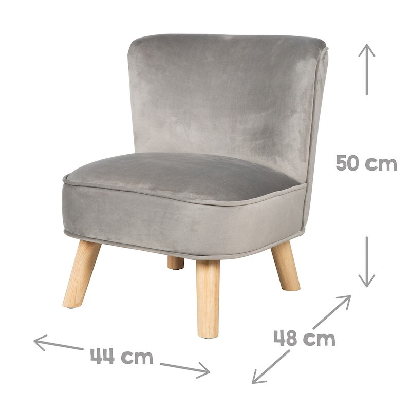 Детское кресло с мягкой обивкой из бархатистой ткани и прочными деревянными ножками впишется в интерьер любой детской комнаты и украсит ее.