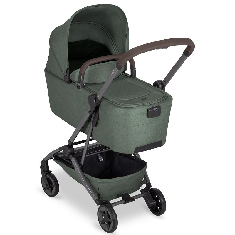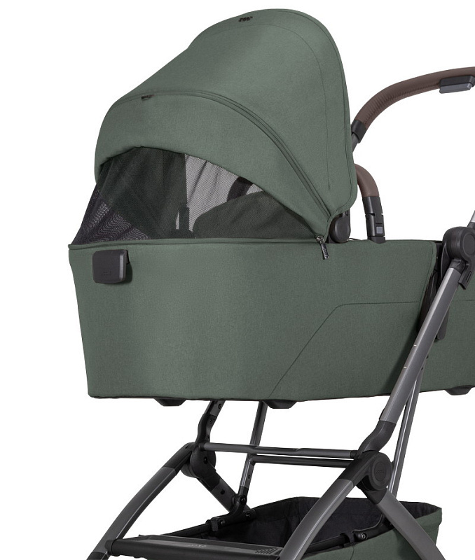 - На шасси можно установить люльку для новорожденного (приобретается отдельно). Она компактно складывается вместе с шасси коляски