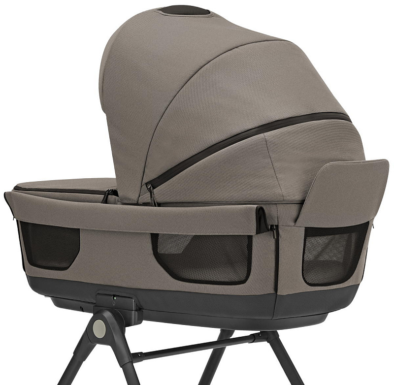 Высокие борта из полипропилена обеспечат климат-контроль. Настраиваемая вентиляция дна и изголовья, вентиляционная секция и защита от солнца и непогоды для комфорта в любое время года. Накидка на двух молниях для удобного доступа к малышу.