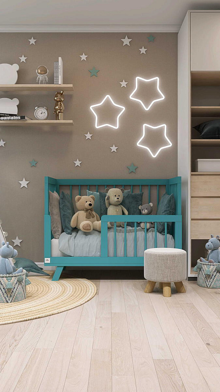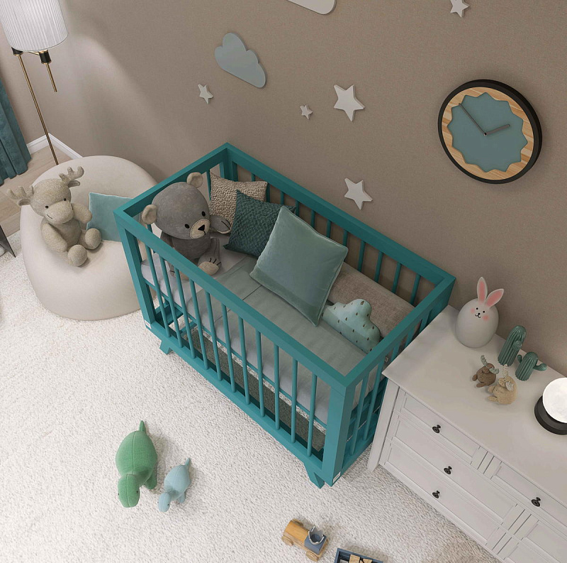 Реечные стенки обеспечивают свободный воздухообмен и визуальный контакт малыша с родителями.