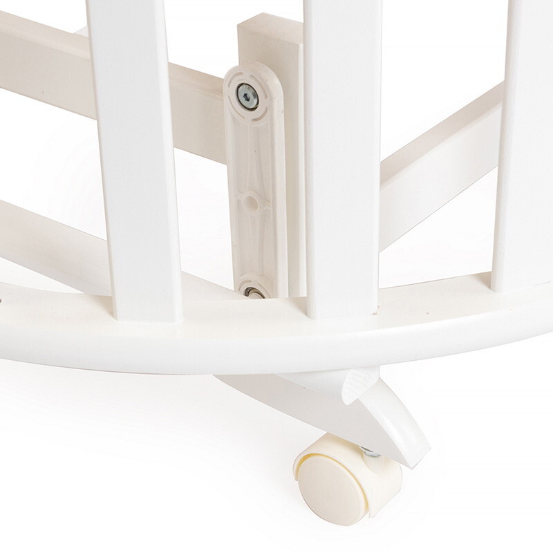 Кроватка-трансформер овальная Vikalex Лоди маятник на колёсах белый
