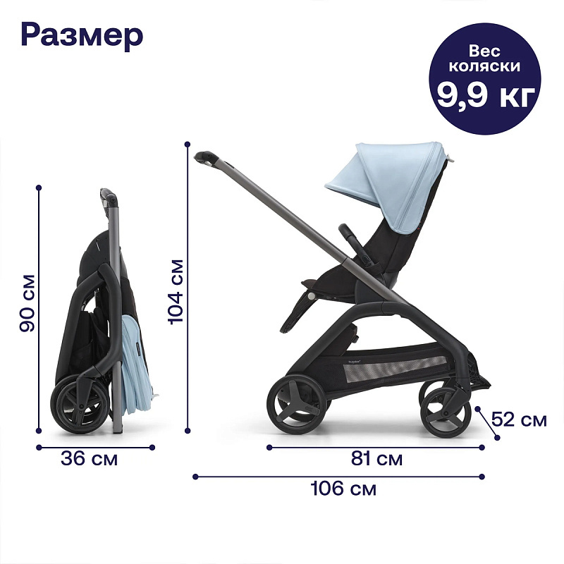 Благодаря запатентованной конструкции Bugaboo Dragonfly можно сложить одной рукой в любом положении, не снимая сиденье или люльку. В сложенном состоянии коляска помещается в багажник автомобиля — идеально для передвижений по городу и путешествий. Для удобства переноски предусмотрен плечевой ремень.