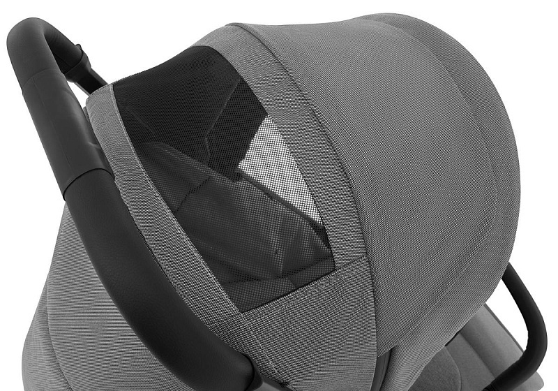 Задняя стенка капюшона имеет новое большое сетчатое окно, которое обеспечивает дополнительную вентиляцию и непрерывный приток кислорода, обеспечивает видимость ребенка, а также защищает его от насекомых.