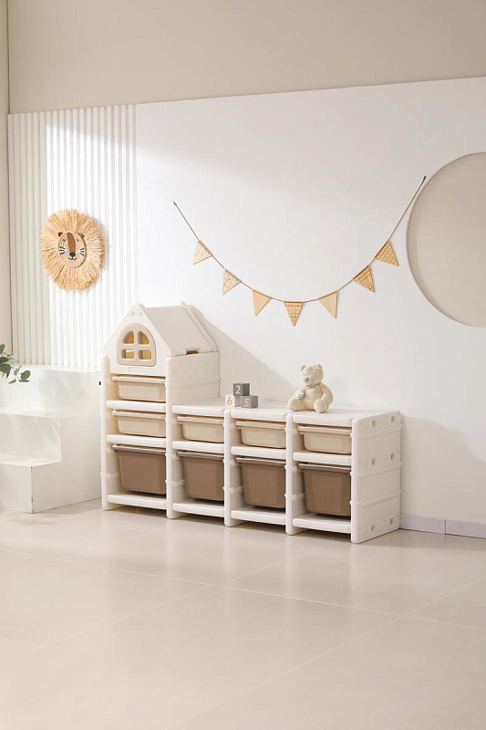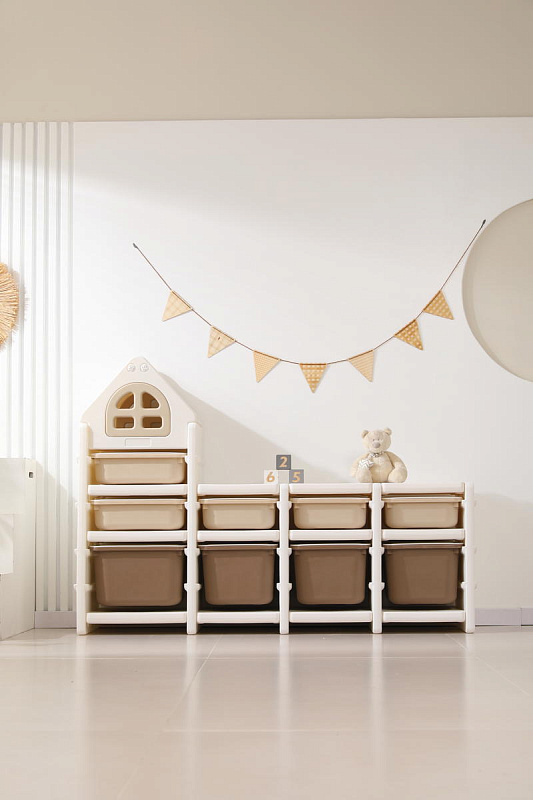 Наш пластиковый стеллаж для игрушек имеет светлую цветовую гамму, что позволяет ему идеально вписаться в любой интерьер и прекрасно подойти для детских комнат мальчиков и девочек. Этот стеллаж - прекрасное решение для хранения как мягких игрушек, так и более тяжелых предметов.