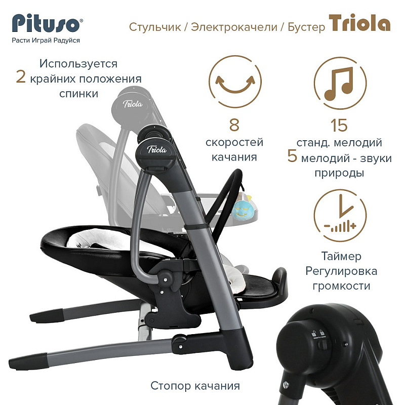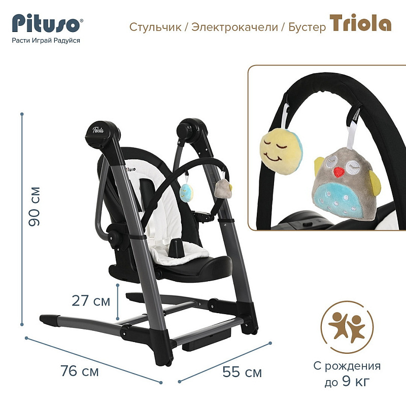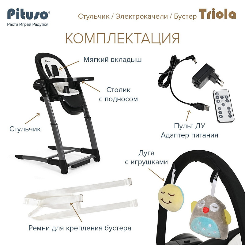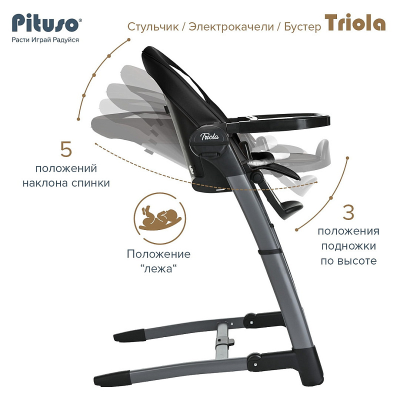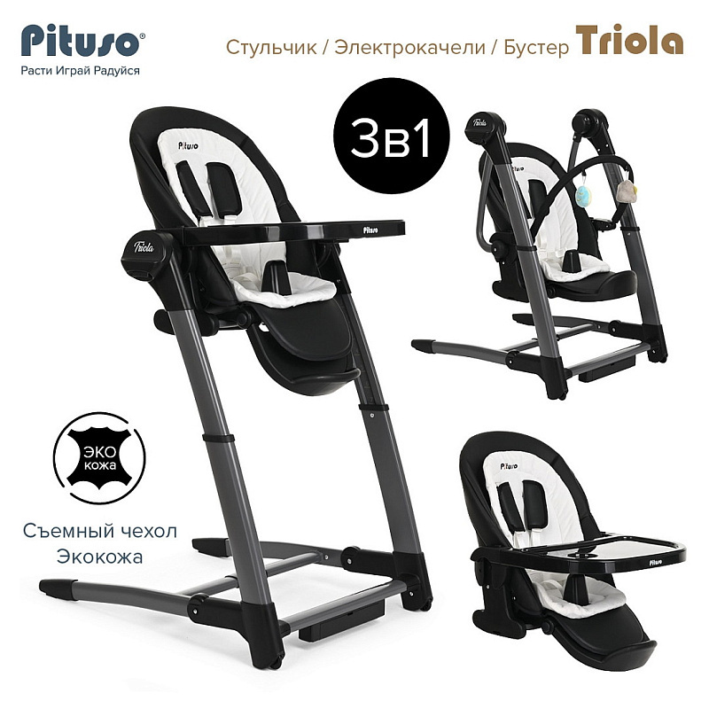 Стульчик для кормления Pituso Triola 3 в 1 Черная рама/Черный